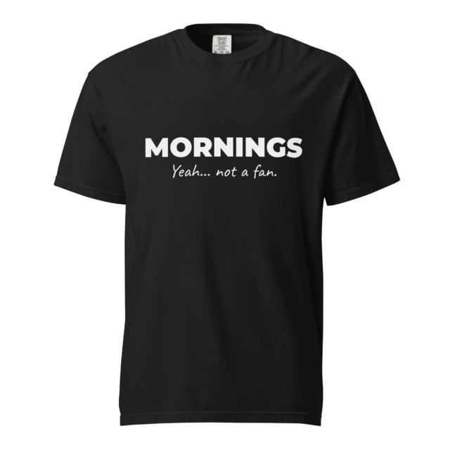 For the person who is sick of the “rise and grind” enthusiasts who treat a 5:00am alarm like a religious experience. You’re over the betrayal of a snooze button that clearly doesn’t love you. Because when you’d trade your kingdom for just five more minutes of sleep, you’re definitely not a fan of Mornings.